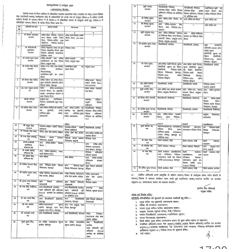 · आईएएस अधिकारी: कुल 23 आईएएस अधिकारियों को नए दायित्व दिए गए हैं, जिनमें कई विभागों के सचिव और जिलाधिकारी शामिल हैं।