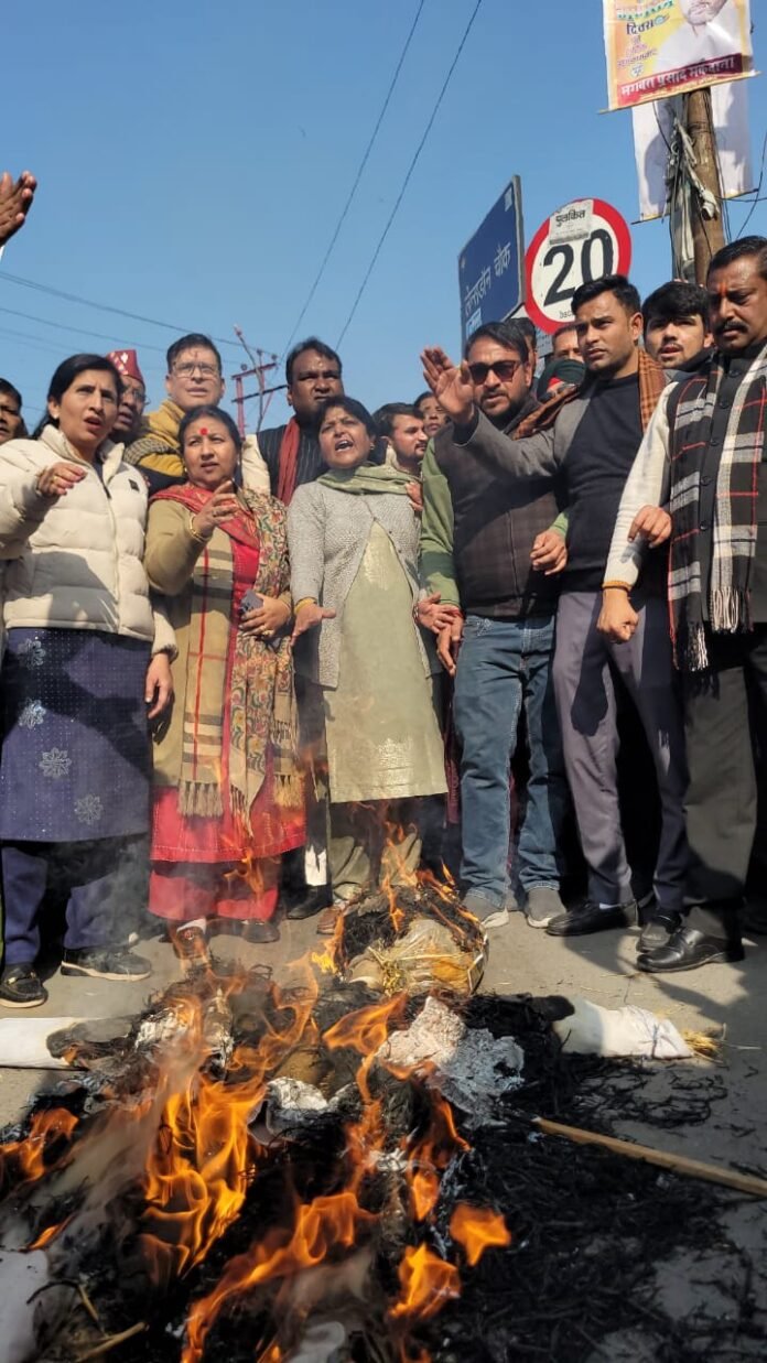 पुतला दहन के कार्यक्रम देहरादून महानगर में महिला मोर्चा की प्रदेश अध्यक्ष रुचि भट्ट, महानगर अध्यक्ष सिद्धार्थ उमेश अग्रवाल, महिला मोर्चा महानगर अध्यक्ष सुमन सिंह जी समेत भरी संख्या में कार्यकर्ता शामिल हुई।