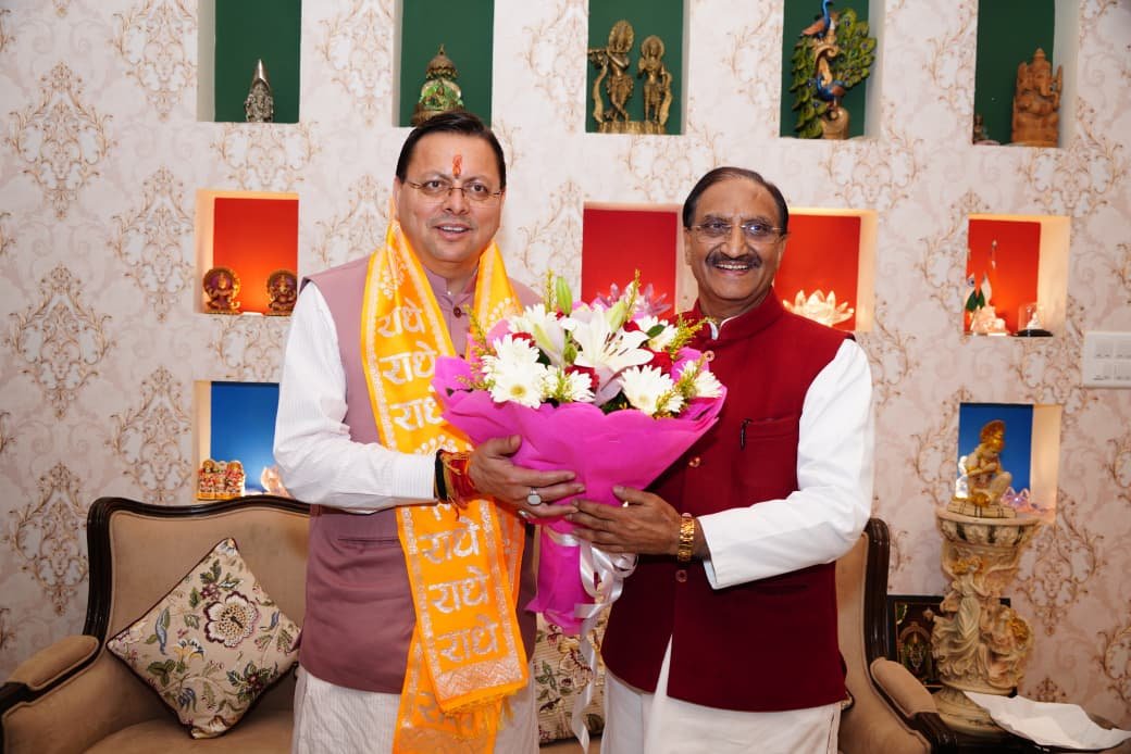 देहरादून(आरएनएस)। मुख्यमंत्री पुष्कर सिंह धामी आज पूर्व मुख्यमंत्री एवं पूर्व केंद्रीय मंत्री रमेश पोखरियाल ‘निशंक’ के निजी आवास पर पहुंचे। इस अवसर पर मुख्यमंत्री ने उन्हें दीपावली की हार्दिक बधाइयाँ एवं शुभकामनाएँ दीं। मुख्यमंत्री ने इस अवसर पर निशंक के प्रति अपना स्नेह और आदर व्यक्त करते हुए उनके उत्तम स्वास्थ्य, सुख एवं समृद्धि के लिए शुभेच्छा व्यक्त की।