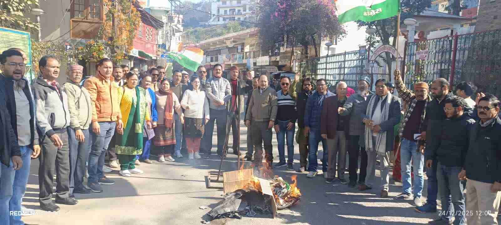 अल्मोड़ा(आरएनएस)। अंकिता भंडारी हत्याकांड में भाजपा के उत्तराखंड प्रभारी दुष्यंत गौतम का नाम सामने आने के बाद कांग्रेस कार्यकर्ताओं ने बुधवार को नगर में विरोध प्रदर्शन करते हुए दुष्यंत गौतम का पुतला दहन किया। प्रदर्शन के दौरान कांग्रेस नेताओं ने मामले में निष्पक्ष जांच और जिम्मेदार लोगों पर कार्रवाई की मांग उठाई। कांग्रेस जिलाध्यक्ष भूपेंद्र सिंह भोज ने कहा कि अंकिता भंडारी हत्याकांड में दुष्यंत गौतम का नाम उजागर होना इस बात का स्पष्ट संकेत है कि सत्ता के संरक्षण में अपराधियों को बचाने का प्रयास किया गया। उन्होंने कहा कि यह मामला केवल एक हत्या तक सीमित नहीं है, बल्कि न्याय व्यवस्था पर सीधा हमला है। कांग्रेस पहले दिन से यह कहती रही है कि इस जघन्य अपराध में प्रभावशाली लोगों को बचाने की साजिश रची गई। अब जब एक वरिष्ठ भाजपा नेता का नाम सामने आया है, तो सरकार की कथित ‘जीरो टॉलरेंस’ नीति पूरी तरह बेनकाब हो गई है। कांग्रेस नेताओं ने मांग की कि दुष्यंत गौतम की तत्काल गिरफ्तारी की जाए, पूरे मामले की स्वतंत्र और निष्पक्ष जांच कराई जाए तथा हत्याकांड से जुड़े सभी प्रभावशाली लोगों को कानून के कटघरे में लाया जाए। साथ ही यह भी स्पष्ट किया जाए कि अब तक ऐसे नामों को सामने आने से क्यों रोका गया। उन्होंने कहा कि अंकिता भंडारी को न्याय दिलाने के लिए कांग्रेस हर स्तर पर संघर्ष जारी रखेगी और दोषियों को बचाने वालों को भी जवाबदेह बनाया जाना चाहिए। पुतला दहन कार्यक्रम में नगर अध्यक्ष तारा चंद्र जोशी, दीप डांगी, प्रकाश चंद्र जोशी, नारायण दत्त पाण्डेय, पूरन रौतेला, दिनेश नेगी, मनोज वर्मा, हर्ष कनवाल, विनोद वैष्णव, निज़ाम कुरैशी, अम्बी राम आर्या, अख्तर हुसैन, भैरव गोस्वामी, अजित कार्की, प्रीति बिष्ट, दिनेश पिल्कवाल, गीता मेहरा, सुशील साह, रमेश भाकुनी, संजय दुर्गापाल, गौरव वर्मा, वकुल साह, अमर बिष्ट, वैभव पाण्डेय, लीला जोशी, देव सिंह कनवाल, रविंद्र टम्टा, बाल विक्रम, गोविन्द मेहरा, परितोष जोशी, गोविन्द बाल्टियाल, मनोज बिष्ट, दीपेश कांडपाल, पंकज पाठक, राहुल अधिकारी, कार्तिक साह और अमरीश कुमार सहित बड़ी संख्या में कांग्रेस कार्यकर्ता मौजूद रहे।
