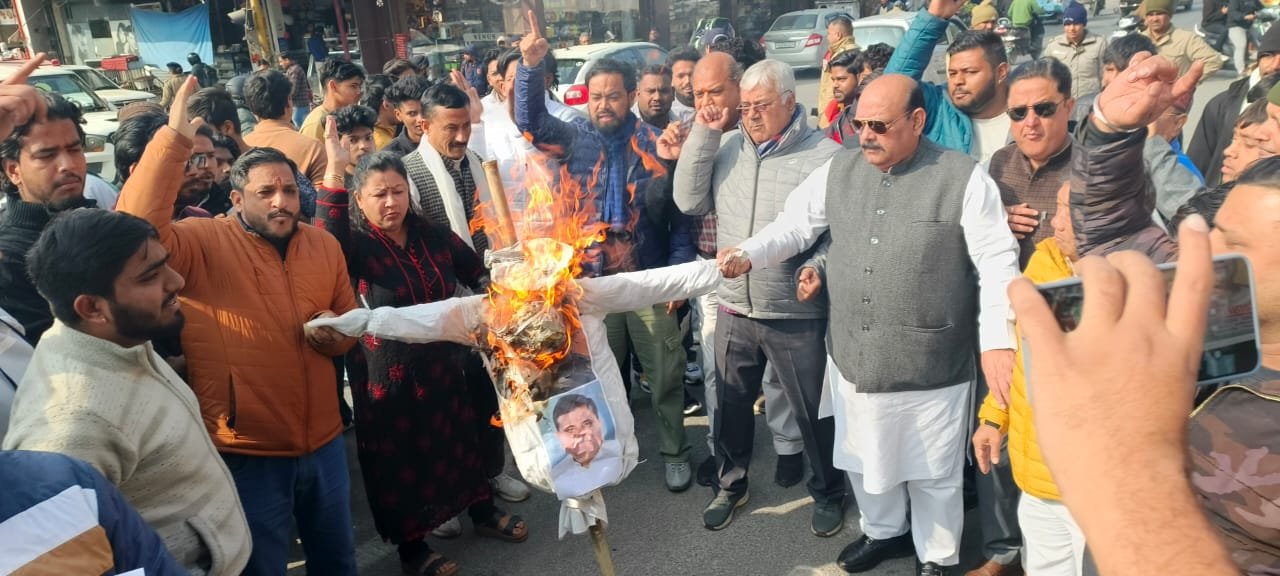 उत्तराखंड की बेटी अंकिता भंडारी की निर्मम हत्या को तीन साल होने को हैं, लेकिन धामी सरकार आज भी हत्यारों के साथ खड़ी दिखाई देती है, पीड़िता के साथ नहीं। इसी सरकारी संरक्षण, सत्ता की चुप्पी और न्याय की हत्या के खिलाफ आज कांग्रेस के युवा नेता रितेश छेत्री के नेतृत्व में यमुना कॉलोनी चौराहे पर धामी सरकार का पुतला दहन किया गया।
