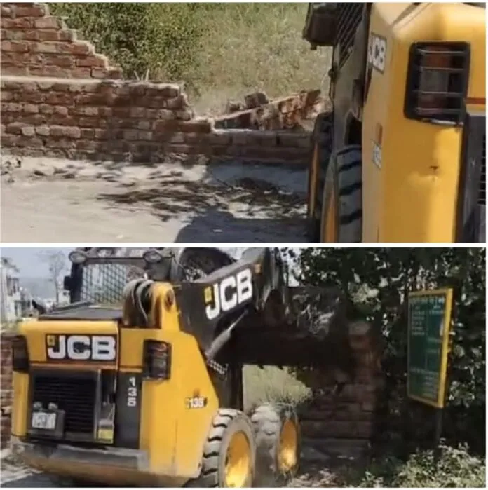 जिलाधिकारी के निर्देशों के अनुपालन में राजस्व एवं नगर निगम सहित संबंधित विभागों के अधिकारी एवं कार्मिक समस्त आवश्यक संसाधनों एवं पुलिस बल के साथ निर्धारित समय पर मौके पर उपस्थित होकर मार्ग से अनाधिकृत दीवार को हटाया गया।