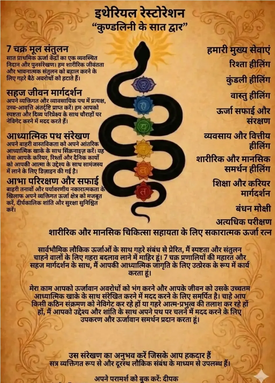 Home » इथेरियल रेस्टोरेशन: कुण्डलिनी जागरण और चक्र संतुलन से जीवन में आएगी सुख-समृद्धि