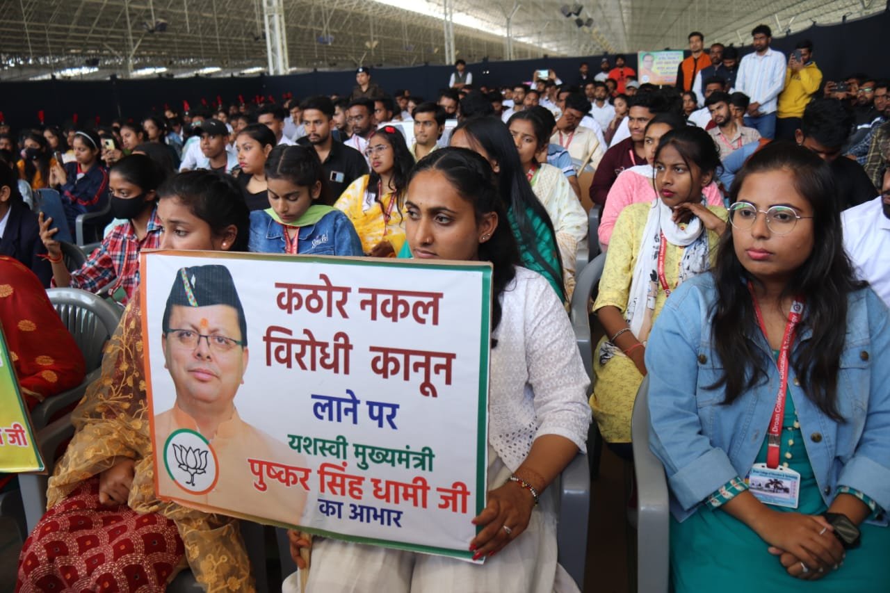 उन्होंने कहा कि भर्ती परीक्षाओं में होने वाली गड़बड़ी को जड़ से खत्म करने के लिए हमने भारतवर्ष का सबसे सख्त कानून बनाया है जिसमें नकल कराने वाले व्यक्ति के लिए उम्र कैद तक का भी प्रावधान करने के साथ ही सारी सम्पत्ति जब्त करने का भी प्रावधान किया गया है। उन्होंने कहा कि जो अभ्यर्थी नकल करने में एक बार पकड़ा गया तो 03 साल तक अगर वह इसमें फिर से संलिप्त पाया जाता है तो अगले 10 वर्षो तक वह किसी परीक्षा में भाग नही ले सकता है और पूरे देश का सर्वाधिक सख्त कानून है। उन्होने कहा कि बच्चे हमारे देश का भविष्य हैं, उनके भविष्य से कोई खिलवाड़ न करे उनकी उम्मीदों को ना तोडे़, इन सभी बातों पर गहनता से विचार करते हुए हमने ये नकल विरोधी सख्त कानून बनाया।