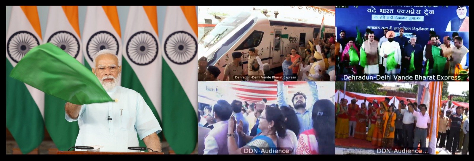 मुख्यमंत्री पुष्कर सिंह धामी ने देवभूमि उत्तराखण्ड को देहरादून-दिल्ली वंदे भारत एक्सप्रेस एवं राज्य के समस्त रेल मार्गों को विद्युतीकरण की सौगात देने के लिए प्रधानमंत्री नरेन्द्र मोदी एवं केन्द्रीय रेल मंत्री अश्विनी वैष्णव का उत्तराखंड की जनता की ओर से आभार व्यक्त किया। उन्होंने कहा कि आज देवभूमि उत्तराखंड के लिए ऐतिहासिक दिन है, हम सभी को इसका साक्षी बनने का मौका मिल रहा है, यह हमारा सौभाग्य है। उन्होंने कहा कि प्रधानमंत्री जी के उत्तराखंड के प्रति विशेष प्रेम का ही प्रतिफल है कि आज से महज साढ़े चार घन्टे में देहरादून से दिल्ली का सफर पूरा होगा। नये युग की रेल सेवा वंदे भारत एक्सप्रेस प्रधानमंत्री जी के प्रगतिशील और आत्मनिर्भर भारत के विजन का साक्षात उदाहरण है। आज प्रधानमंत्री जी के नेतृत्व में हम भारतीय रेल के स्वर्णिम युग की तरफ बढ़ रहे हैं। स्वदेश में निर्मित भारत की पहली सेमी हाई स्पीड ट्रेन वंदे भारत उभरते हुए भारत की बुलंद तस्वीर को प्रदर्शित करती है।