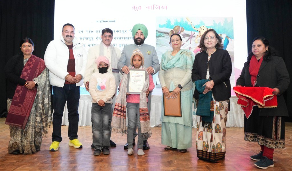 देहरादून(आरएनएस)। उत्तराखण्ड बाल संरक्षण आयोग द्वारा राजभवन में ‘राष्ट्रीय बालिका दिवस’ के अवसर पर आयोजित कार्यक्रम में राज्यपाल लेफ्टिनेंट जनरल गुरमीत सिंह (से नि) ने बतौर मुख्य अतिथि प्रतिभाग किया। इस अवसर पर राज्यपाल ने बहादुर बेटियों कु. आराधना एवं कु. नाजिया को उनकी बहादुरी के लिए सम्मानित किया। पौड़ी गढ़वाल के विकासखंड खिर्सु की 10 वर्षीय बालिका, आराधना द्वारा 2023 में बहादुरी का परिचय देते हुए गुलदार से अपने 07 वर्षीय भाई की जान बचाई थी। 2023 में ही देहरादून के विकासखंड सहसपुर की 10 वर्षीय बालिका नाजिया ने गुलदार के हमले से अपने 03 भाईयों की जान बचाई थी। राज्यपाल ने दोनों बच्चियों को प्रशस्ती पत्र दिया और शॉल ओढ़ाकर सम्मानित किया। इसके साथ ही राज्यपाल ने बाल संरक्षण आयोग द्वारा बनाए गए बाल विधायकों कु. भूमिका रौथाण, कु. दीक्षा खर्कवाल, कु. अगमसिफत कौर, कु. काजल कश्यप, कु. सुमेधा उपाध्याय को उनके कार्यों के लिए सम्मानित किया। बाल कल्याण हेतु किए जा रहे प्रयासों के लिए भी उन्होंने श्रीमती गीतिका शर्मा, प्रज्ञा भारद्वाज, राजेन्द्र प्रसाद, गुरप्रीत सिंह एवं श्रीमती मंजू शर्मा को भी सम्मानित किया।