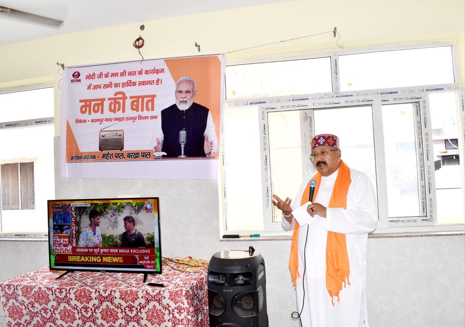 मन की बात कार्यक्रम के दौरान राज्य मंत्री श्रीमती मधु भट्ट, मण्डल अध्यक्ष राहुल लारा, मण्डल महामंत्री अवधेश तिवारी, उमा नरेश तिवारी, पवन वर्मा, श्रीमती देविका रानी, श्रीमती बॉबी कुमारी, मनोज कुमार, अजय पाल, सत्यपाल रोहिला, तारा चंद, महेश पाल, श्रीमती बरखा, पंडित भक्ति प्रसंन त्यागी, श्रीमती अनिता देवी, श्रीमती सुमन आदि भाजपा कार्यकर्ता मौजूद थे।
