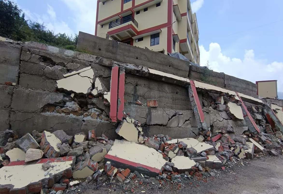 चमोली : गर्ल्स हास्टल की निर्माणाधीन सुरक्षा दीवार ढही