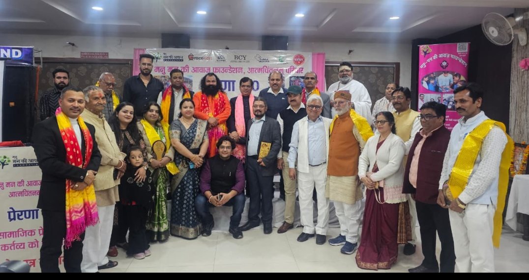 हरिद्वार।( हमारी चोपाल) सामाजिक प्रेरणा एवं कर्तव्य को समर्पित “प्रेरणा 1.0 – श्रेष्ठ रत्न सम्मान समारोह” का आयोजन होटल विभव ग्रैंड में उत्साह और गरिमामय वातावरण में सम्पन्न हुआ। यह आयोजन, मनु मन की आवाज फाउंडेशन एवं आत्मचिंतनम् परिवार के संयुक्त तत्वावधान में संपन्न हुआ। कार्यक्रम की अध्यक्षता डॉ आनंद भारद्वाज जी पूर्व शिक्षा निदेशक संस्कृत भारती त्तराखंड