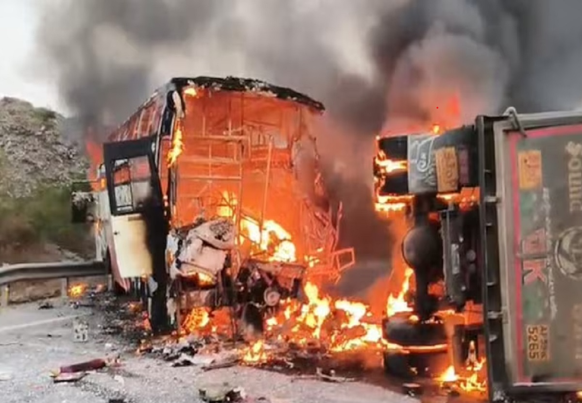 यह दुर्घटना स्लैब क्वारी के पास हुई, जहां टक्कर के तुरंत बाद बस में आग लग गई और कई यात्री उसमें फंस गए। तेज रफ्तार बस के बजरी से लदी टिपर से टकराते ही आग भड़क उठी, जिससे पूरी बस जलकर खाक हो गई।