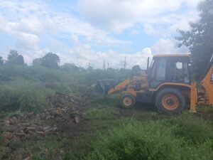 ग्राम डांडी, रानीपोखरी – टिकराम पुरवाल द्वारा लगभग 10 से 12 बीघा भूमि पर अवैध प्लॉटिंग को ध्वस्त किया गया।