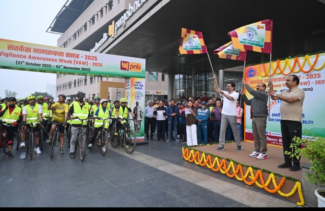 देहरादून- 03 नवंबर 2025: भारत के अग्रणी सार्वजनिक क्षेत्र के बैंक, पंजाब नैशनल बैंक (पीएनबी) ने 27 अक्टूबर से 2 नवंबर 2025 तक चलने वाले सतर्कता जागरूकता सप्ताह (वीएडब्ल्यू) के अंतर्गत एक रोमांचक साइक्लोथॉन 2025 का सफलतापूर्वक आयोजन किया। इस वर्ष का विषय, “सतर्कता: हमारी साझा ज़िम्मेदारी”, पूरे कार्यक्रम का आधार रहा। यह कार्यक्रम पीएनबी के कॉर्पोरेट कार्यालय में आयोजित किया गया।